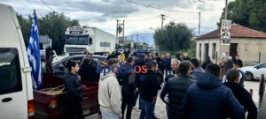 Οι αγρότες της Δυτικής Αχαΐας έκλεισαν την Εθνική, στο ύψος της Βιομηχανικής Περιοχής.